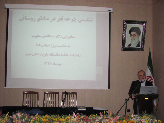 در این نشست علمی تخصصی که در محل آمفی تئاتر دانشکدهی تغذیه تشکیل شد، دکتر احسانی رئیس دانشکده ضمن عرض خیر مقدم به بیان اهداف نشست پرداخت. سپس دکتر طاهراقدم قائم مقام رئیس دانشگاه سخنرانی خود را با عنوان "سند ملی امنیت غذایی" ارائه نمود. در ادامه دکتر بهشتی استاد اقتصاد دانشگاه تبریز با عنوان "توسعهی اقتصادی در نقاط روستایی"، دکتر سلطانعلی محبوب استاد دانشگاه علوم پزشکی تبریز با عنوان "شکستن چرخهی فقر در مناطق روستایی"، دکتر کمال کوهی عضو هیئت علمی مؤسسه تحقیقات اجتماعی دانشگاه تبریز با عنوان "تبیین جامعه شناختی امنیت غذایی" سخنرانی کرده و در پایان پانل تخصصی امنیت غذایی با شرکت دکتر نجفی معاون دارو و غذای دانشگاه، دکتر احسانی، دکتر محبوب، دکتر استاد رحیمی و مهندس پورعلی مدیر گروه بهبود تغذیهی مرکز بهداشت استان به بیان نکته نظرات خویش در زمینهی موضوع و شعار اصلی روز جهانی غذا (حفاظت اجتماعی و کشاورزی: شکستن چرخه فقر در مناطق روستایی) و حمایت اجتماعی از گروههای آسیب پذیر جامعه پرداختند.